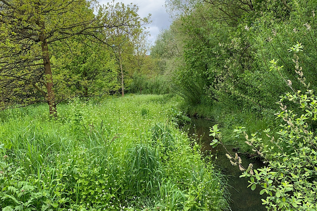 So haben wir es gemacht. Regenjacke, Wasser und ein kleiner Snack in den Rucksack und ab sollte es gehen. Ich kannten meinen groben Ausgangspunkt und so hat uns das Navi dahin gelotst. Einen Parkplatz gefunden und direkt die Markierung für den Wanderweg entdeckt: Das grüne Schild mit der 11. Dass das so reibungslos losgeht hätte ich nicht gedacht! Alle drei sind wir die ersten Meter zusammen marschiert und haben uns über das Maigrün gefreut. Nach etwa 20 Minuten waren wir zwar noch nicht an dem See angekommen, aber an einem Reiterhof, wo meine Tochter unbedingt die Pferde beobachten wollte. Der perfekte Zeitpunkt für mich, um meinen Weg allein fortzusetzen. Die ganze Zeit bin ich der 11 gefolgt, an Schrebergärten vorbei, durch dichtes, saftiges Grün, bis ich irgendwann an einem Wegweiser angekommen bin. In meiner Richtung stand darauf: 11➡️Friedhof Ohlsdorf. Und da fiel es mir plötzlich auf: Ich war die ganze Zeit genau in die entgegengesetzte Richtung meines Ziels gelaufen. Ups!